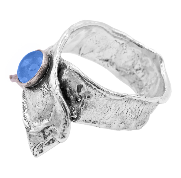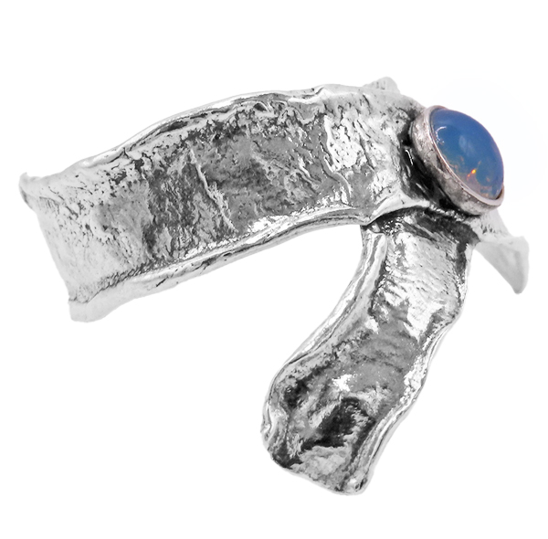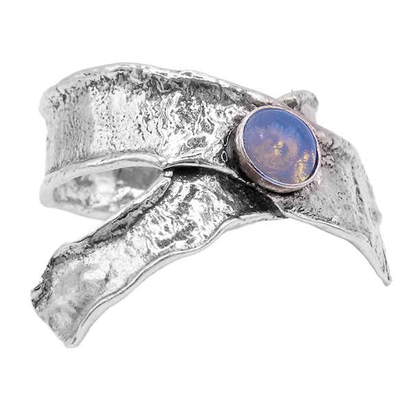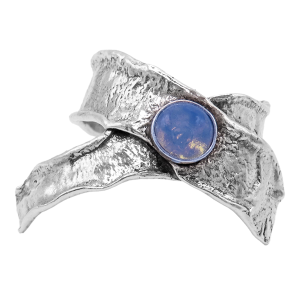 Inspired by the crystal-clear ice caves of Iceland, this bold sterling silver ring features a captivating blue opal set in dramatically textured silver.