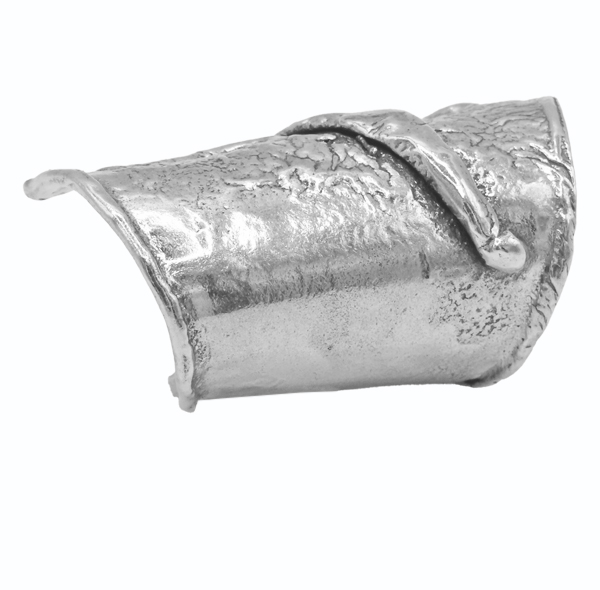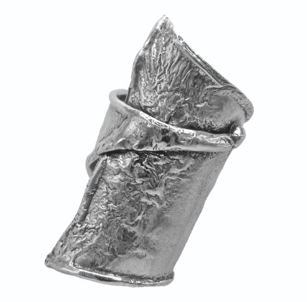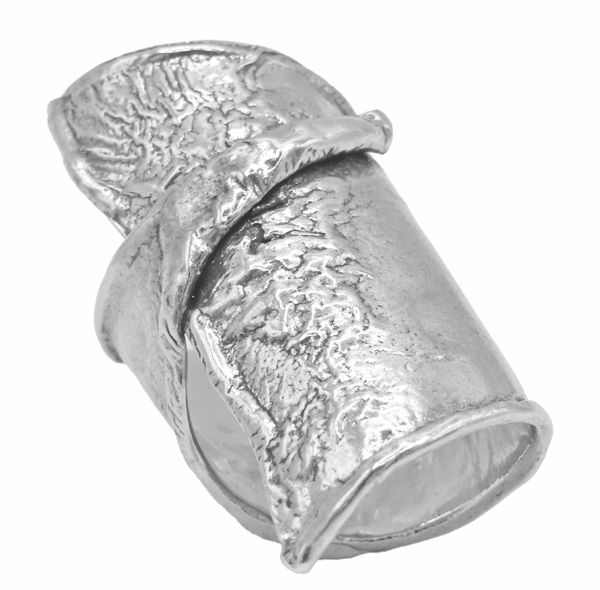 Its swirling silver design mimics a tidal surge, offering a sleek, organic shape that’s a rare, wearable masterpiece.